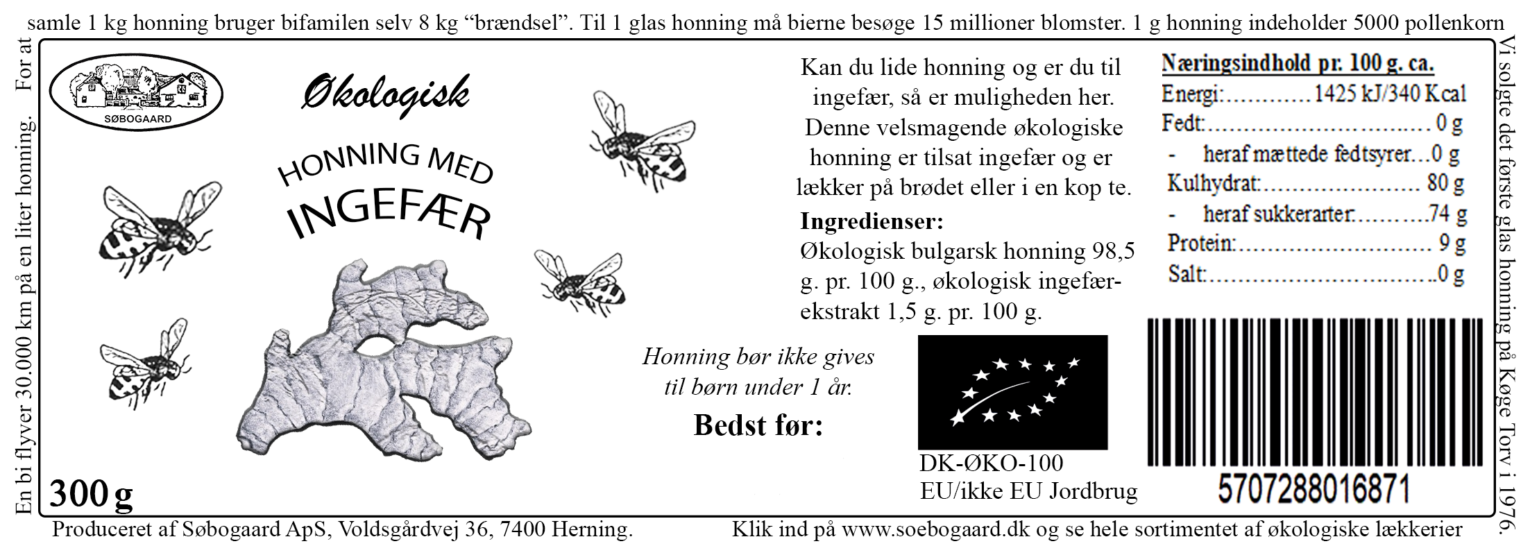 Øko Honning med ingefær 300 g