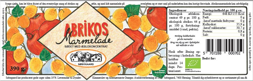 Ingredienser: Økologiske abrikoser sødet med rørsukker. 390 gram.