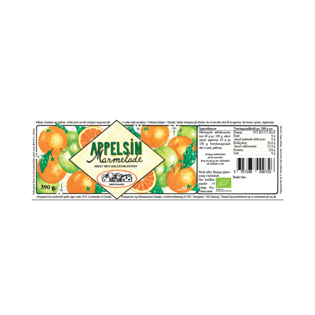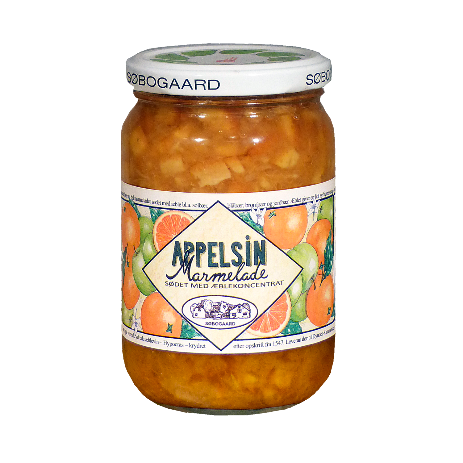 Søbogaard´s appelsinmarmelade æblesødet, er fremstillet af godkendte økologiske appelsiner. Produktet er med respekt for miljøet og bærene forarbejdet med kærlig hånd til et virkeligt kvalitetsprodukt. Marmeladen produceres altid i januar måned, da det uden tvivl er der de bedste søde og saftige appelsiner findes.