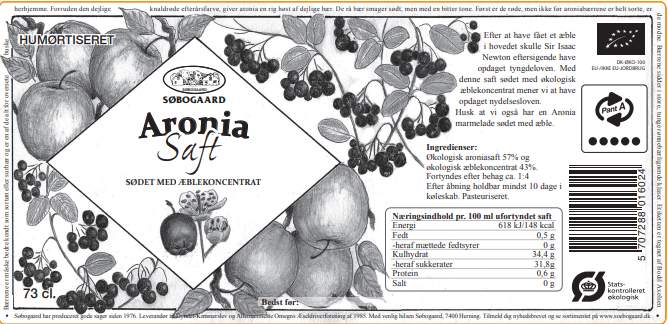 Ingredienser: Økologisk aronia, sødet med økologisk æblekoncentrat