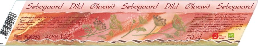 Søbogaard Dild Økvavit har en mild og venlig smag med en smuk hilsen af økologisk dild. Særdeles velegnet til fisk og skaldyr. Bør kun nydes ved lejligheder du ønsker at mindes med glæde. Humørtiseret.