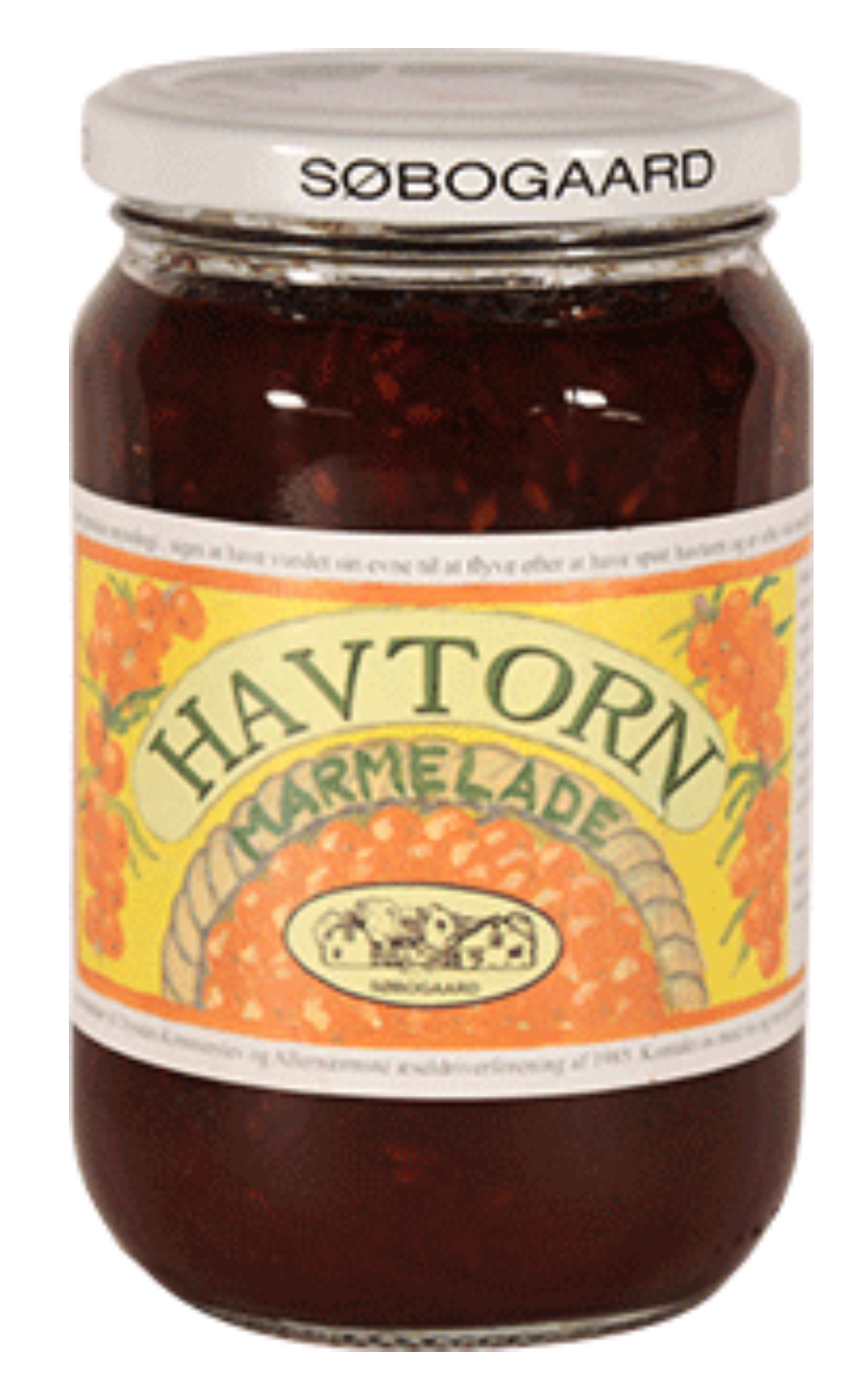 Søbogaard´s Havtornmarmelade er lavet med hele havtornbær og den bedste økologiske rørsukker. Dette giver en helt fantastisk konsistens og smag. Havtornmarmeladen har en karakteristisk syrlig og sød smag. Havtorn er små orange bær, der vokser på havtornbusken, typisk i nordjylland eller de sydøstlige øer i sandet område. Bærrene har et højt indhold af C-vitamin og antioxidanter. Havtornmarmeladen kan bruges som pålæg på brød, pandekager eller croissanter, eller den kan bruges i desserter, glasering af kødretter eller som smagsgiver i saucer og dressinger. Ingredienser: Økologiske havtorn, økologisk rørsukker, vand og pektin 400 gram