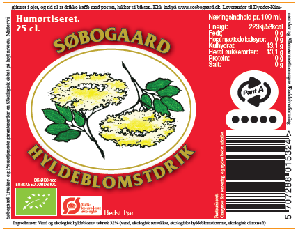 Ingredienser: Vand, økologisk hyldeblomstudtræk 32 % (økologisk rørsukker, økologiske hyldeblomstskærme, økologisk citronkoncentrat)