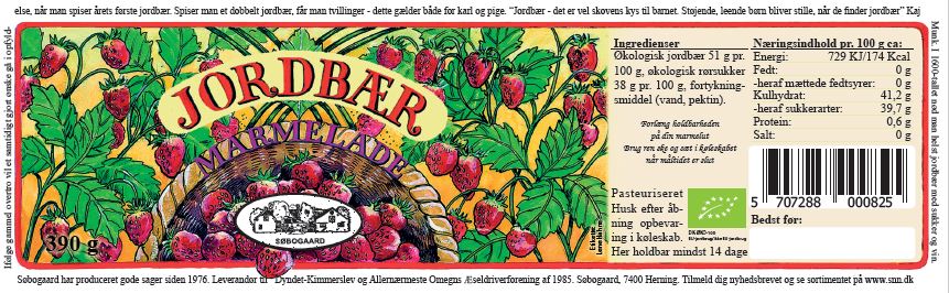 Ingredienser: Økologiske jordbær sødet med rørsukker. 390 gram.