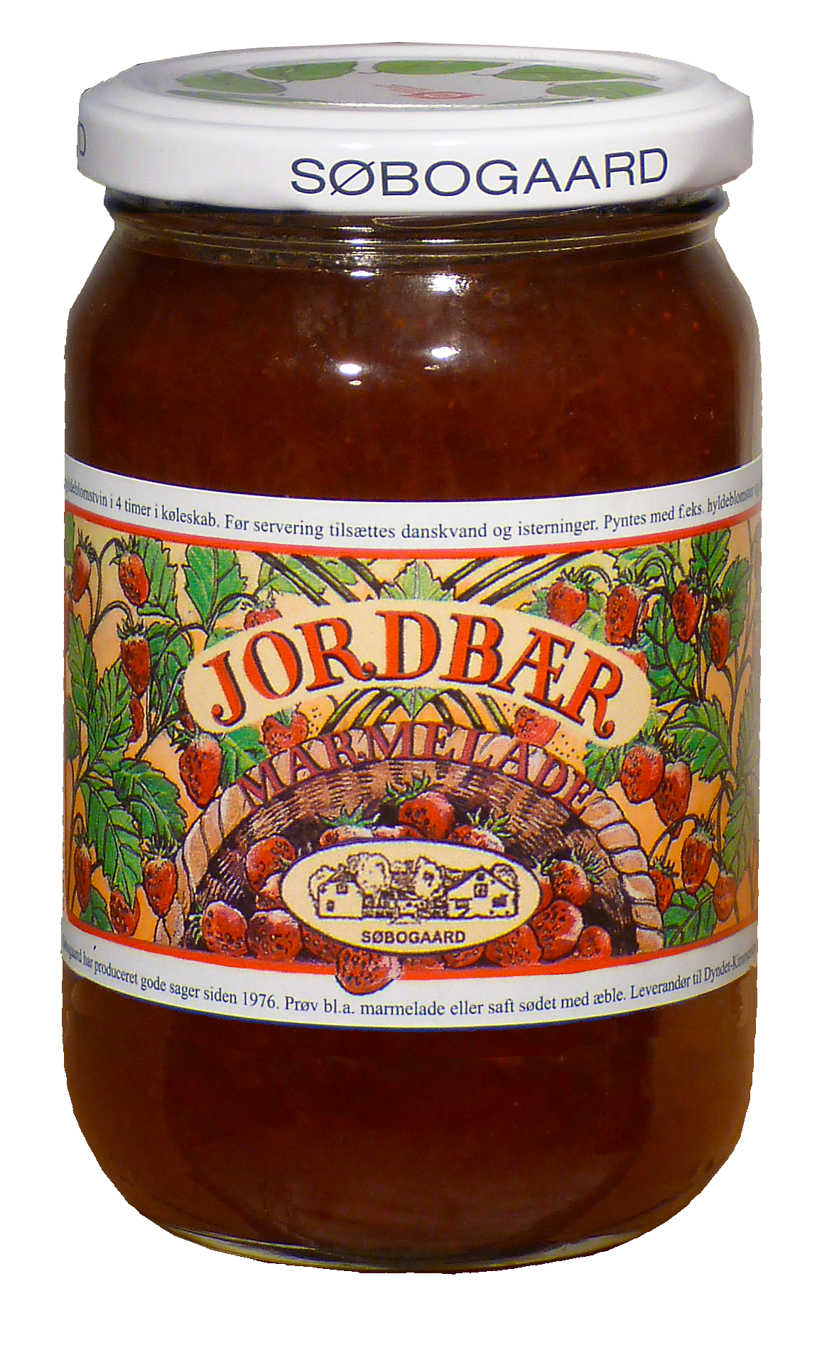 Søbogaard´s økologiske jordbærmarmelade er den helt klassiske marmelade, som vor mor lavede den. Lækre søde jordbær, rørsukker og intet andet. Smagen af sommerens bær kan nydes hele året og kan bruges til lige det du har lyst til. Ingredienser: Økologiske jordbær,  økologisk rørsukker, vand og pektin 400 gram