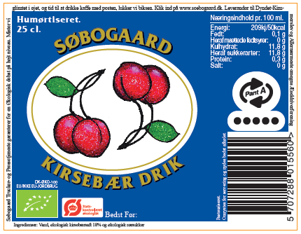 Ingredienser: Vand, økologiske kirsebær 18 % og økologisk rørsukker
