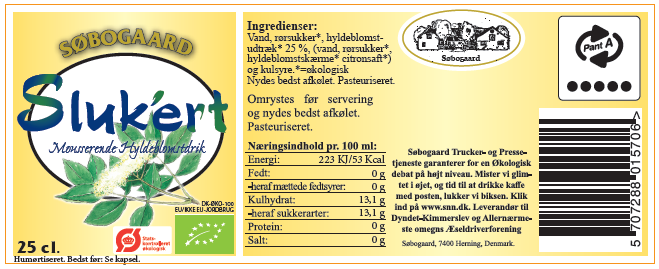 Søogaard Sluk´ert er den klassiske hyldeblomstdrik, tilsat kulsyre, som gør den ekstra lækker og mousserende.